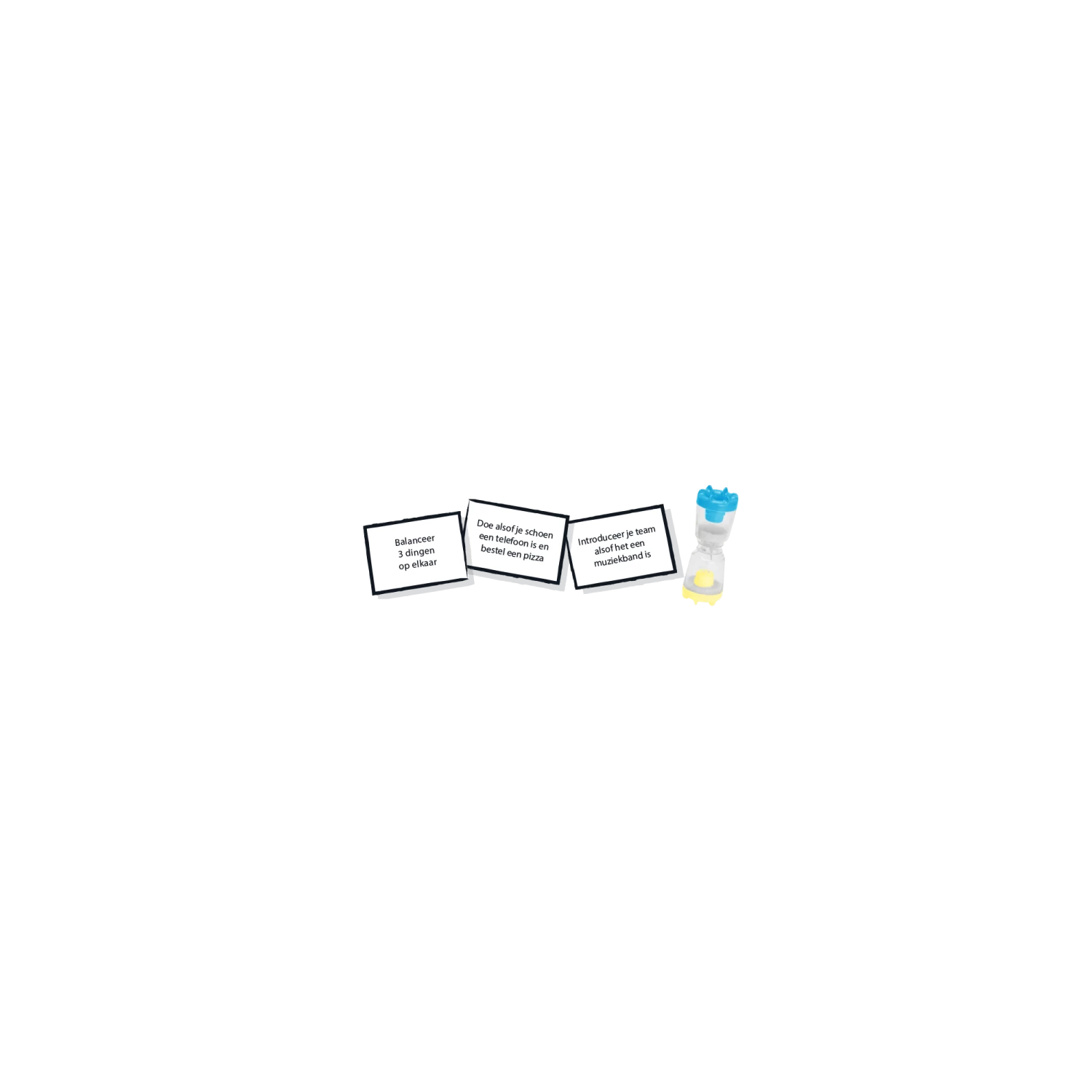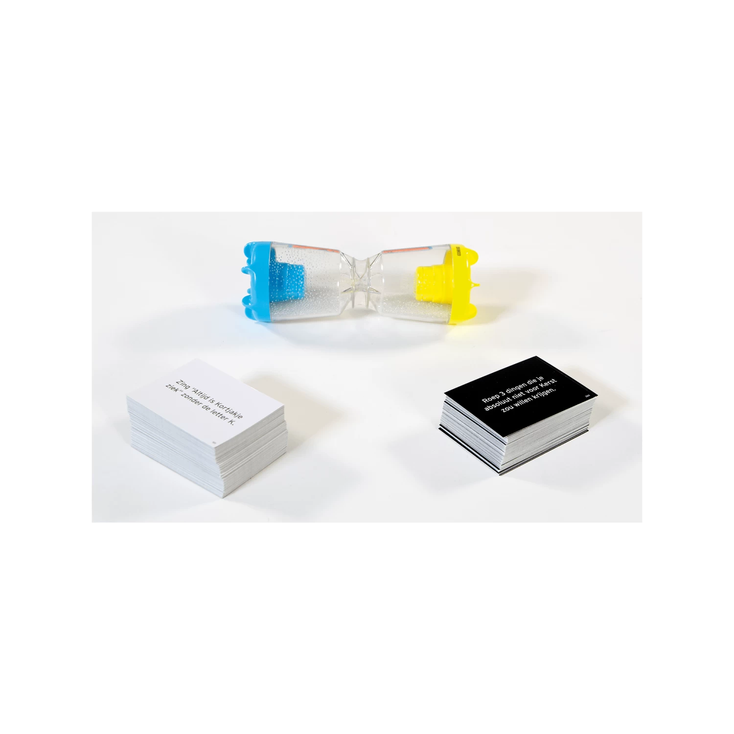 2 teams, 400 uitdagingen. Geen tijd te verliezen! In dit doldwaze partyspel vol belachelijk hilarische uitdagingen. Probeer je als team zo snel mogelijk opdrachten te vervullen om ervoor te zorgen dat het andere team “geen zand” meer heeft.