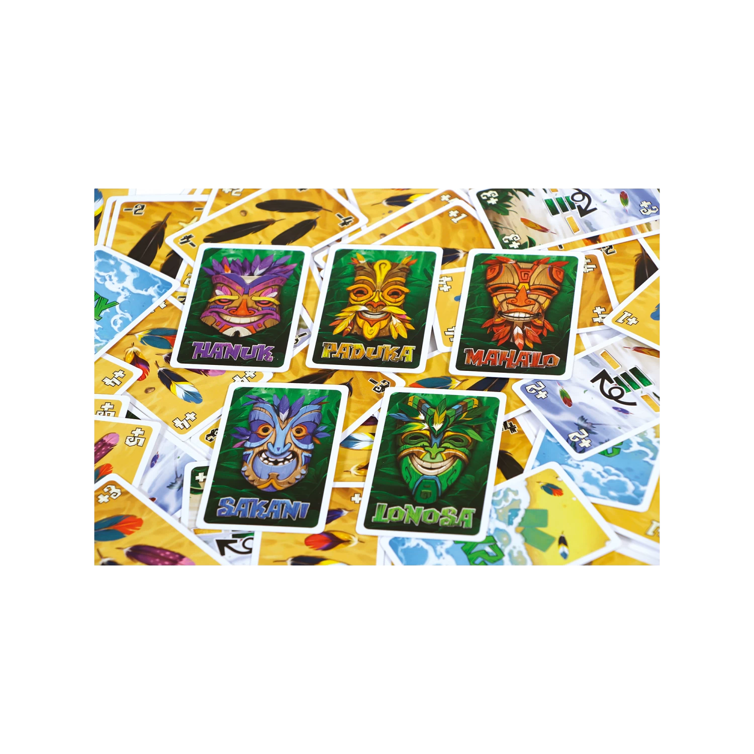 Het is feest op het eiland! Bij dit feest worden 5 verschillende houten maskers versierd. Het mooist versierde masker zal geluk en fortuin brengen voor degene die het gemaakt heeft. Iedereen versiert samen alle maskers, en wil natuurlijk zijn eigen masker zo mooi mogelijk maken, maar je wilt voorkomen dat anderen doorhebben welk masker van jou is, zodat de mooiste veren uiteindelijk bij jouw masker belanden.