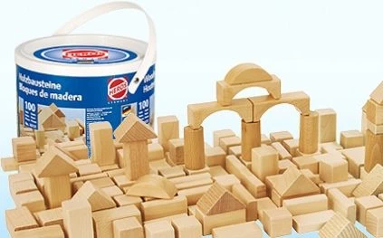 Set bestaat uit 100 bouwstenen verpakt in handige trommel.