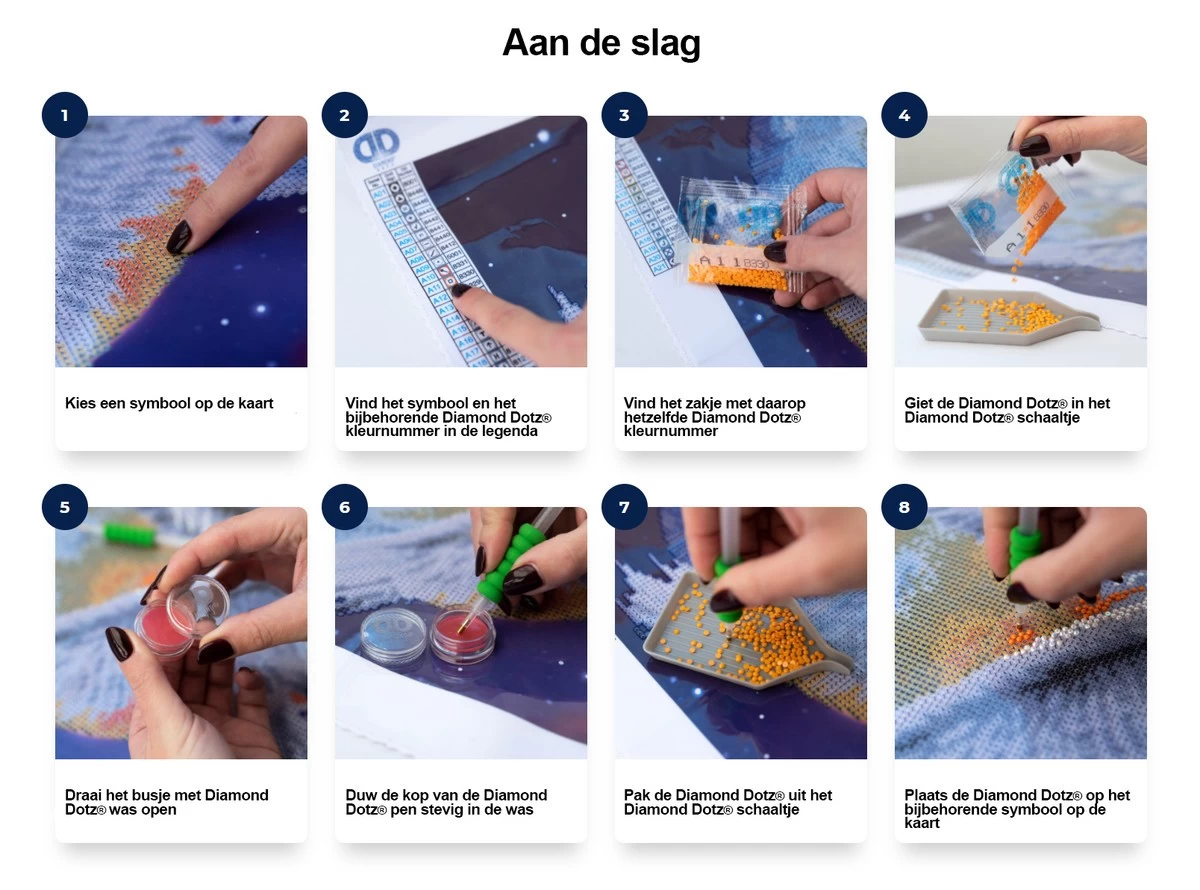 Compleet pakket voor het maken van een schilderijtje met diamond painting.