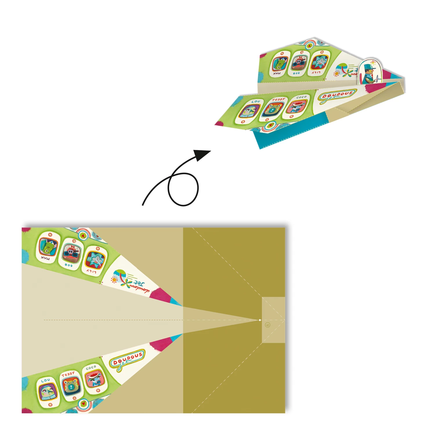 Origami knutselpakket waarmee je 20 papieren vliegtuigjes kunt vouwen. Volg de instructies in het boekje: de vouwlijnen op de bedrukte vellen geven extra houvast. De passagiers hebben al plaats genomen, kies zelf nog een piloot en voeg deze als laatste toe. Ready for take off…