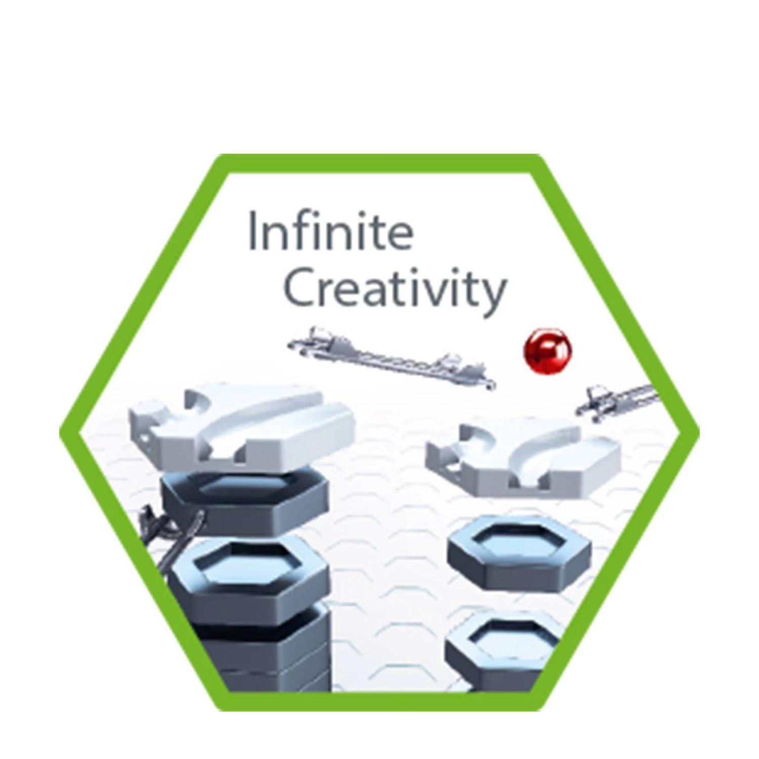 Er zijn twee uitbreidingssets waarmee je je kogelbaansysteem kunt vergroten door de extra bouwelementen met je starterset te combineren. Zo wordt je kogelbaan steeds groter. Daarnaast zijn er speciale bouwelementen leverbaar zoals de looping en de katapult.