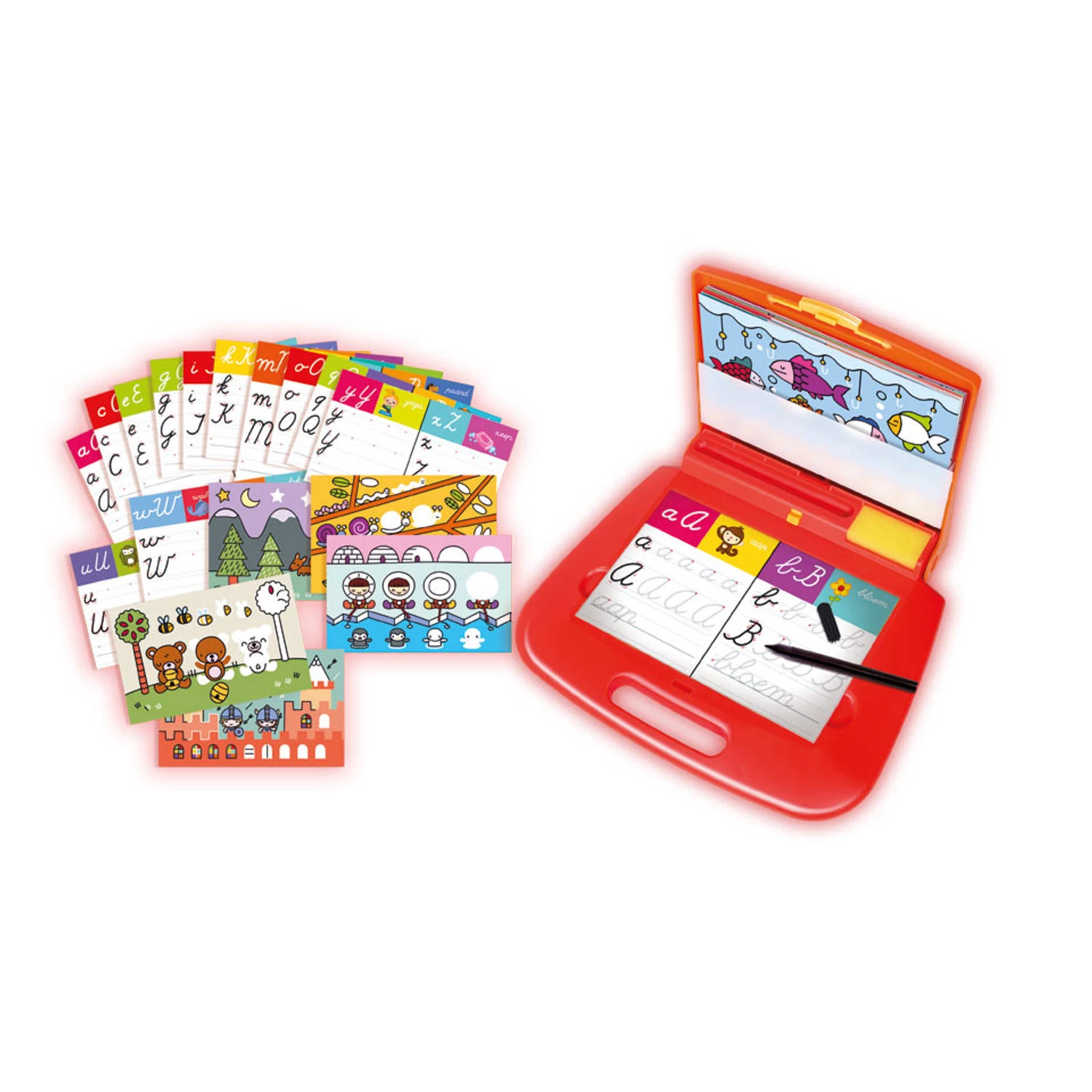 Met Ik Leer – Schrijven leren kinderen spelenderwijs letters en woordjes schrijven. Alle opdrachten zijn zorgvuldig gekozen en sluiten aan bij de lesstof van een kind van 4 jaar. De lichtbak en het speciale schrijfsysteem zorgen ervoor dat kinderen zelfstandig kunnen oefenen. De afwisbare kaarten kunnen keer op keer gebruikt worden.br/br/br/br/Deze set bevat 20 kaarten met 94 opdrachten op 5 verschillende niveaus: motorische vaardigheden oefenen, cijfers, kleine letters, hoofdletters en woordjes leren schrijven. Alles netjes opgeborgen in een handige koffer. Zo kun je het spel overal mee naartoe te nemen. Met dit handige koffertje oefen je vast thuis voor wat je straks op school gaat leren. Met de ‘Ik Leer’-serie van Jumbo oefenen kinderen spelenderwijs bepaalde vaardigheden. De spellen zijn ontwikkeld in samenwerking met professionals en sluiten aan bij de lesstof en belevingswereld van het kind. Voor iedere leeftijd een passend spel. Oefen vast thuis wat je straks op school leert.