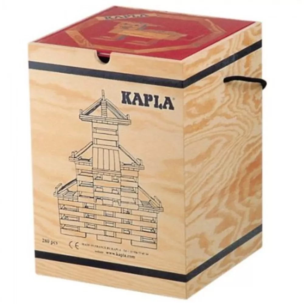 Kapla kist met deksel 280 plankjes en boek rood voor beginners vanaf 6 jaar