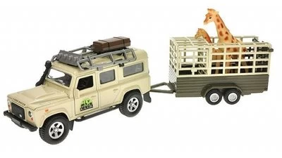 Die Cast terreinwagen Safari met pull-back functie in schaal 1 : 32 = trailer + giraffe.