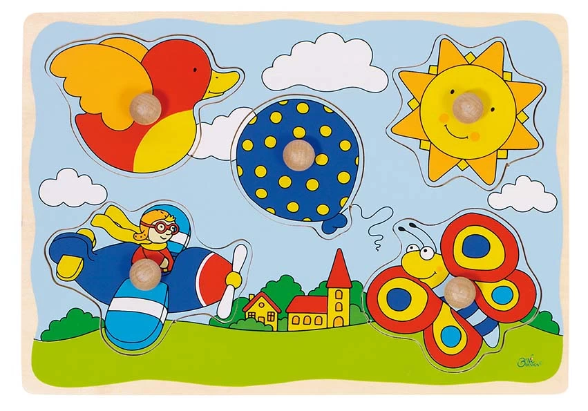 Kleurige noppenpuzzel met extra grote knoppen voor de eerste puzzelprobeersels. De puzzel bestaat uit 5 stukjes.